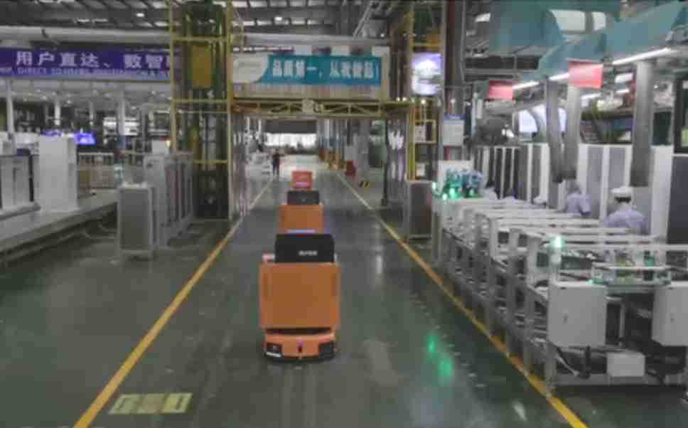 为车载冰箱物流配送打造的智能解决方案,,,,包含产中物流通过潜伏举升AMR搬运至线边,,,,产后成品物流智能仓储,,流程包含产中物流智能齐套入库,,,线边安灯叫料AMR智能配送至线边,,,成品入库、、、出库,,,通过无人堆高车机器人,,,智能仓储管理替代人工作业管理,,,,实现更高存储、、、更高效率、、、、更具柔性化的解决方案。。。